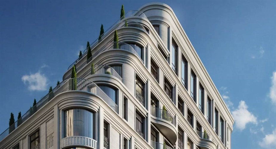 Дом переменной этажности (9-12 этажей) всего на 109 квартир. Неоклассический архитектурный проект выполнен мастерской «Сергей Киселев и Партнеры». Фасады облицованы натуральным мрамором и гранитом, их оригинальный декор создан Андреем, Павлом и Петром Наличами. Благородный силуэт дома подчеркнут французскими балконами и моллированным остеклением на углах.