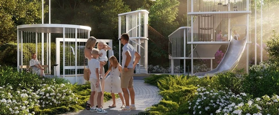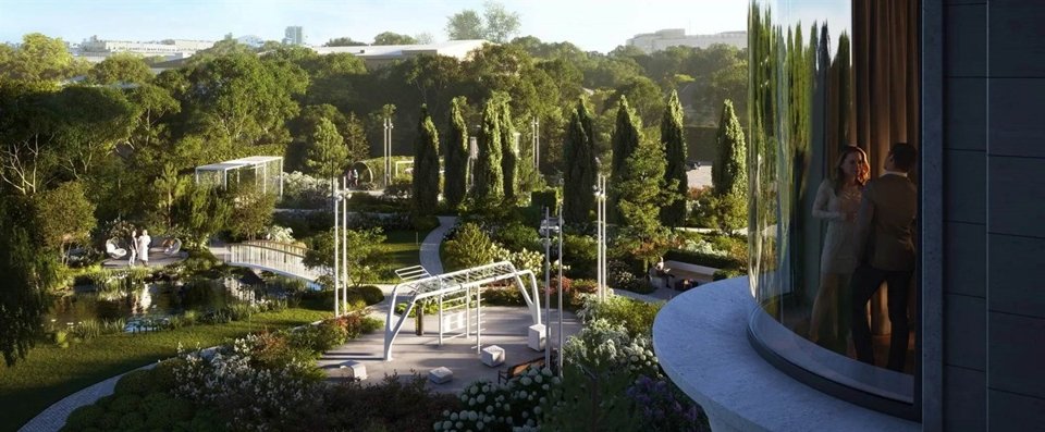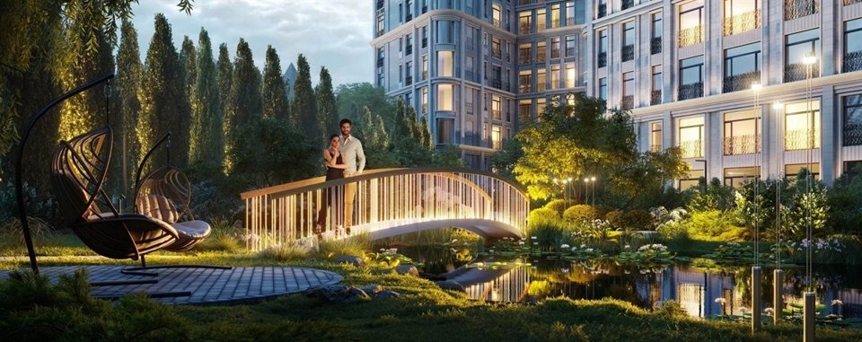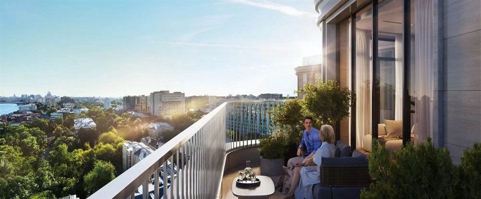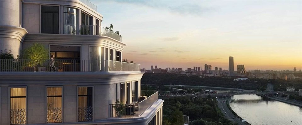 Премиальную атмосферу дополняют зенитный фонарь с естественным светом, водопад, лаунж у камина и библиотека. Площадь лобби 660 кв.м., высота потолков — до 6,5 м. В лобби размещены переговорные комнаты, фитнес-зал с сауной и хамамом, зона персонального тренинга, детский клуб, репетиторский класс, бьюти-рум, кафе.В доме представлено богатое собрание резиденций: лоты с патио, пентхаусы с панорамными террасами и возможностью установки камина, а также классические элитные квартиры с большими гостиными, мастер-спальнями, приватными ванными и гардеробными, террасами и лоджиями. Во всех квартирах — «окна в пол», высота потолков от 3,5 до 4,5 м. Часть квартир — с видами на Новодевичий монастырь, Москву-реку, Москва-Сити, Воробьевы горы.