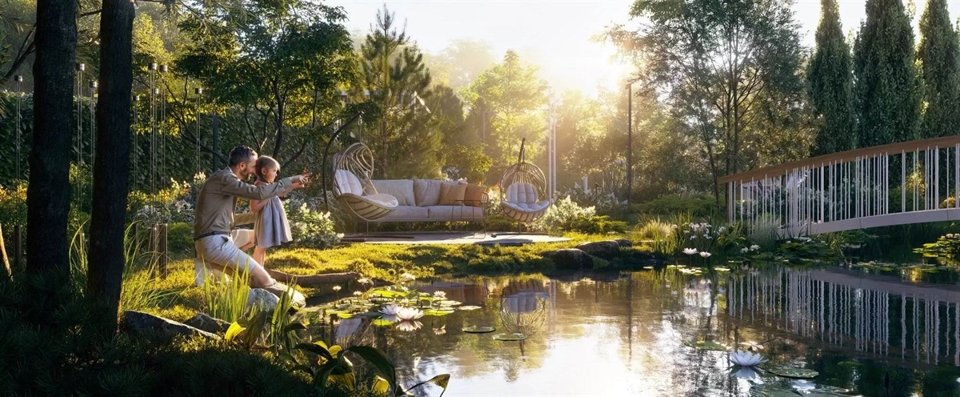 Здесь создана приватная атмосфера для уединенного отдыха: дубовая аллея, пруд