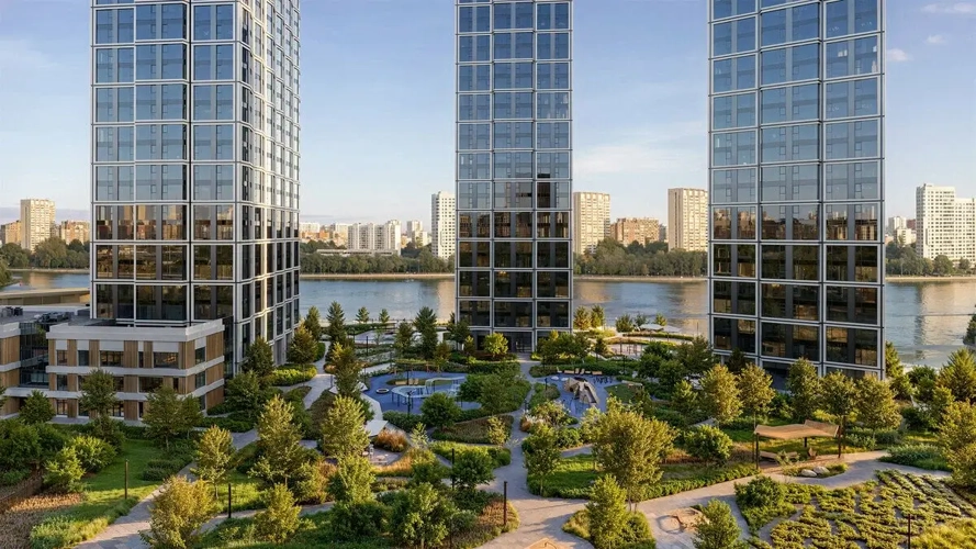 Жилой комплекс — город-курорт на юге Москвы, расположен на живописном зеленом мысе полуострова на первой береговой линии Москвы-реки.