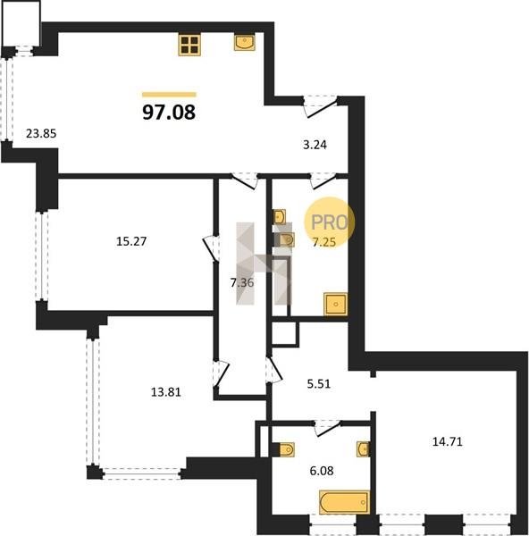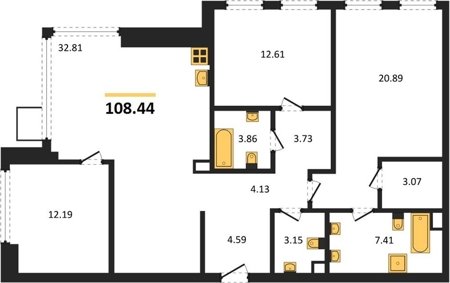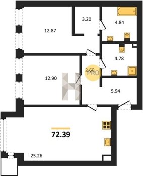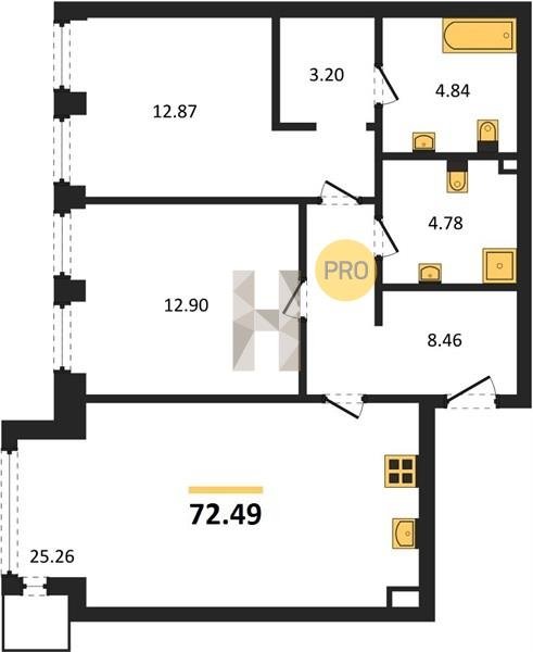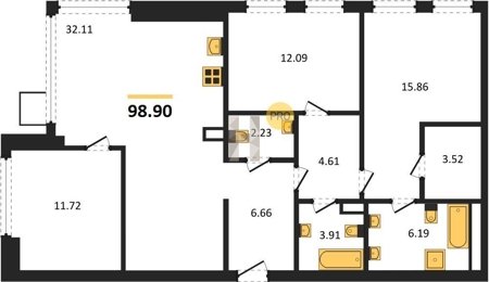 Площадь от 87.32 м2