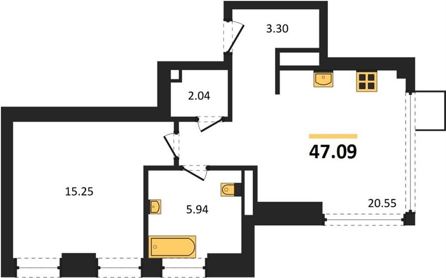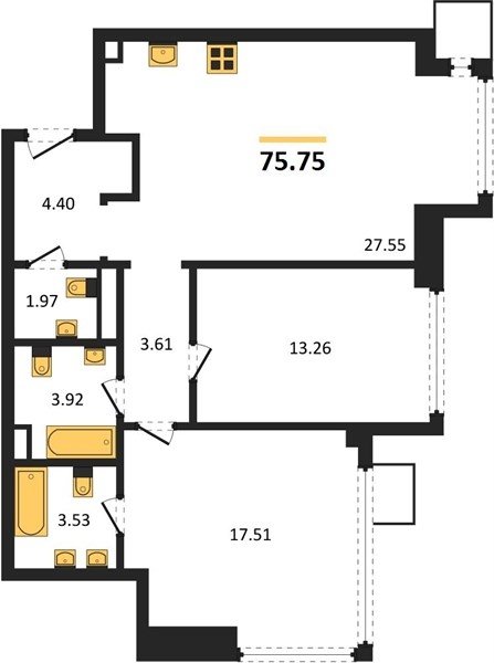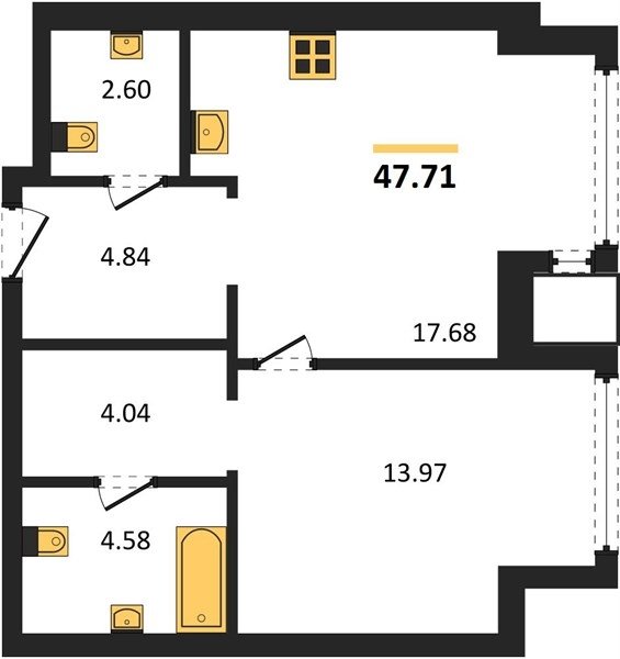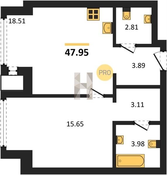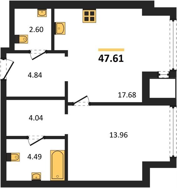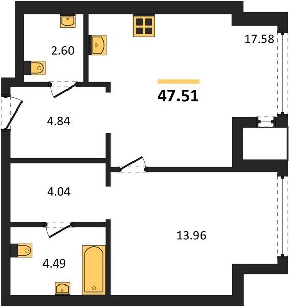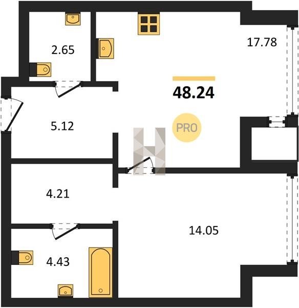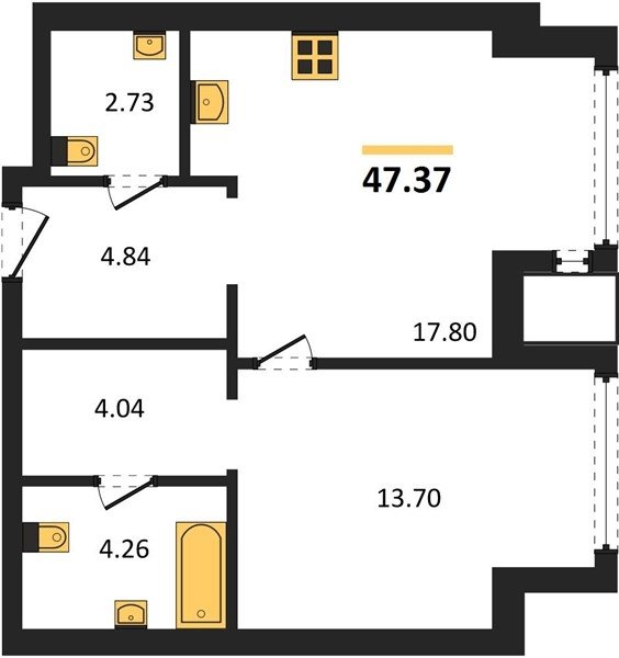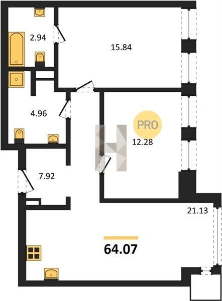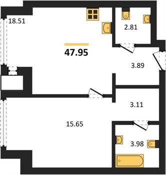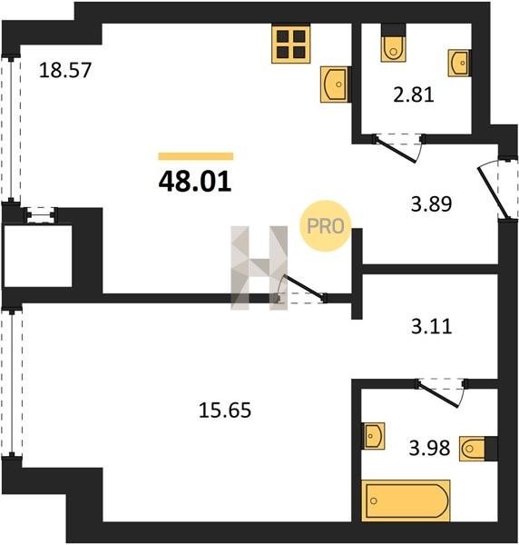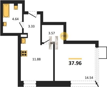 Площадь от 37.96 м2