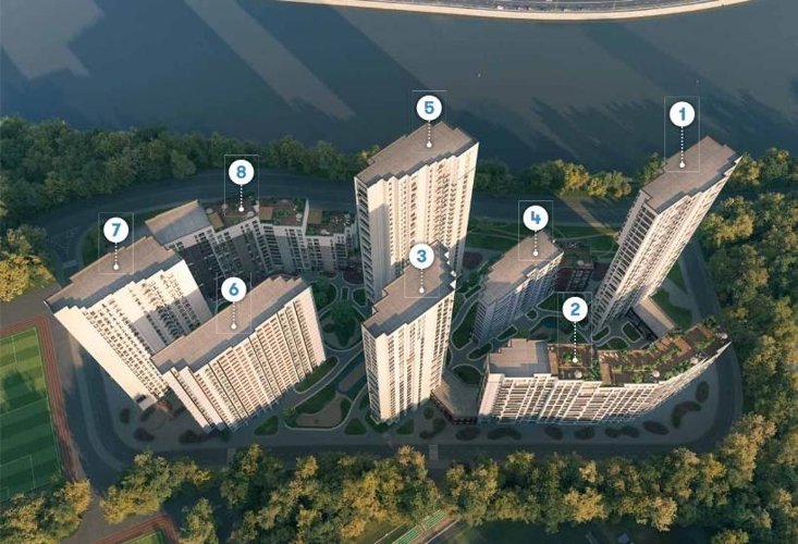 Жилой квартал расположен на берегу Москвы-реки и состоит из восьми многоквартирных корпусов переменной этажности (от 6 до 29 этажей), объединенных подземным двухуровневым паркингом, и двухуровневых таунхаусов с отдельным входом, камином, террасой и собственным патио. Из высотных зданий будут открываться панорамные виды на реку и исторические кварталы старой Москвы.