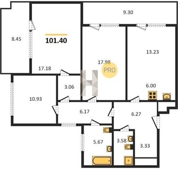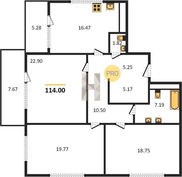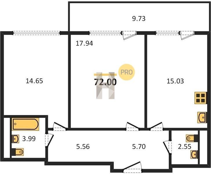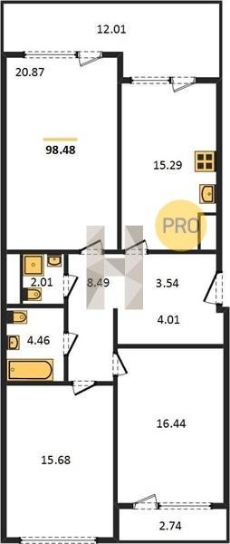 Площадь от 96.5 м2