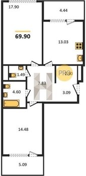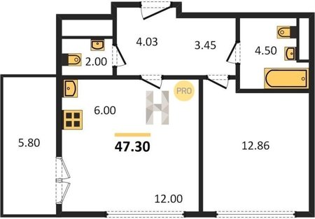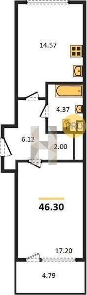 Площадь от 46.5 м2